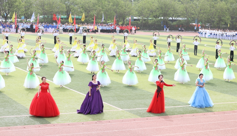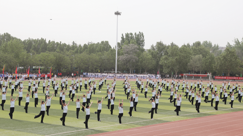 千余名教职工和大学生进行了团体项目表演。258名教职工进行的《第九套广播体操》、音乐学院、校团委带来的歌伴舞《春天的芭蕾》、360名来自体育与健康管理学院等部门的学子们表演的《同心筑梦》团体操等精彩纷呈,师生动作整齐划一,意气风发,充分展现了师生们昂扬向上、奋勇拼搏的精神风貌,赢得现场阵阵掌声和热烈喝彩。