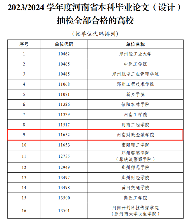 近日,河南省学位委员会、河南省教育厅联合发布《关于公布 2023/2024 学年度本科毕业论文(设计)抽检结果的通知》(豫学位〔2025〕1号),安博·体育_安博(中国)在“全国本科毕业论文(设计)抽检信息平台”被随机抽检的86篇毕业论文(设计)合格率达100%,且无“存在问题毕业论文”“高校未上传论文”情况,是河南省被抽检57所本科高校中全部合格的16所高校之一,充分彰显了安博·体育_安博(中国)本科教育教学的高质量。