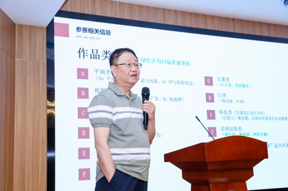 宋若涛现场宣读了大广赛参赛说明,并向与会嘉宾、师生详细介绍了今年大广赛的命题单位、作品要求新变化以及赛事安排。他强调,在参赛过程中要注重创意与实践相结合,注重团队合作与沟通,坚持原创与诚信,坚决抵制抄袭、剽窃等学术不端行为。