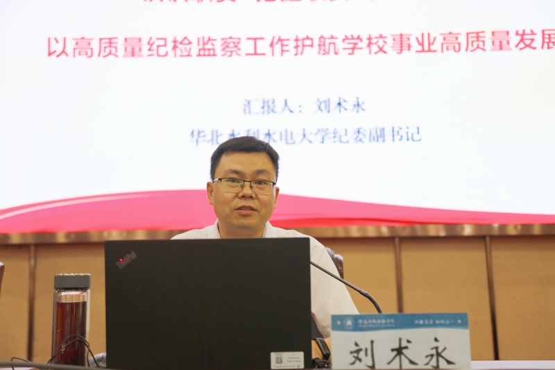 华北水利水电大学纪委副书记刘术永受邀为与会同志作题为《认识职责、把握职责、扛稳职责,以高质量纪检监察工作护航学校事业高质量发展》辅导讲座。刘术永系统解读了纪检监察机关的发展历程与职责演变,阐释了新时代纪检监察机关的职能定位,同时结合华北水利水电大学纪检监察工作实例和典型做法,深入讲解开展监督、执纪、问责以及深化廉洁教育的着力点和具体工作方法,讲座内容脉络清晰、重点突出,具有很强的启发和指导意义。