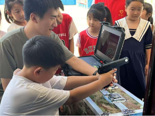 在校党委宣传部、党委武装部、校团委、校办和校工会的大力支持下,2025年的暑期支教项目为期15天,30余名经过严格选拔的师生志愿者前往冯堂第一、第二小学开展志愿服务活动。今年,志愿者们还精心设计了“国防军旅梦”主题升旗仪式、“歌声里的中国”红色歌曲传唱等环节,让孩子们在艺术熏陶中厚植爱国主义情怀。