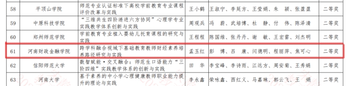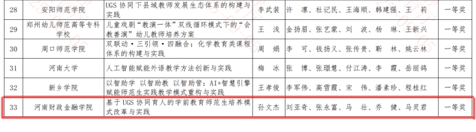近年来,学校主动适应行业和地方经济社会发展需要,积极调整优化学科专业结构,打造以经济学、管理学为主体,以“财经+科技”和“财经+教育”为两翼的“一体两翼”办学特色。学校将以此次获奖为契机,进一步深化教师教育综合改革,强化“财经+科技”“财经+教育”双轮驱动,推动教学成果转化与应用,为河南省教师教育高质量发展注入新动能、提供新支撑。(教务处、教育科学学院 张永富/文 赵广涛、王洪成/审核)