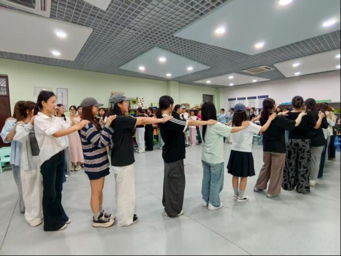 破冰活动在知真楼、知行楼等8个场地同步举行。2025级八个班级的新生在带队教师和学生助理的引导下,迅速投入到了轻松而富有创意的破冰环节中。从“如果你也和我一样”的共鸣发现,到“水果传递”的团队协作;从“叠罗汉”的相识相知,到“拍拍打打放轻松”的温情收尾,整个活动环环相扣、节奏明快,既充满趣味,又蕴含深意。