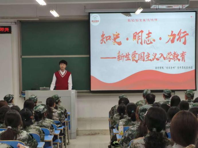 会计学院“青说青听”青年思政宣讲团开展“知史·明志·力行”主题宣讲活动。宣讲员以“一场伟大的人民战争”为主线,回顾了1931年至1945年十四年抗战历程,深情讲述了在中国共产党的领导下,中华民族坚持抗战并最终取得胜利的伟大历史进程,引导广大青年学生牢记历史、珍爱和平、砥砺奋进,增强民族认同感和时代使命感。同时,集体观看了爱国主义教育视频《讲不尽的十四年》。学院还组织开展新生“红歌嘹亮,薪火相传”主题红歌比赛。同学们以宿舍为单位,精心排练演唱《中国军魂》《强军战歌》等脍炙人口、铿锵雄壮的红色歌曲。